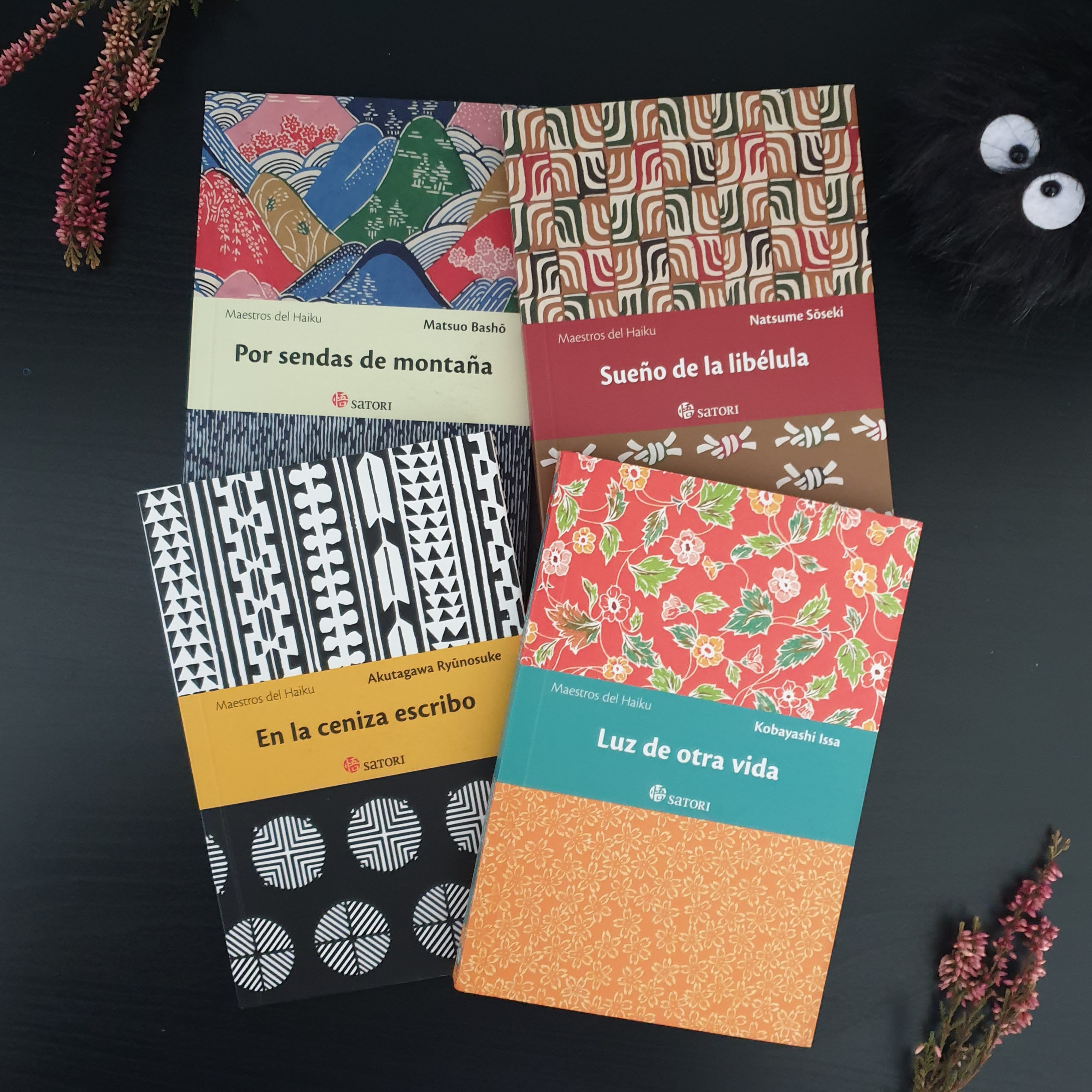 A lo largo de las últimas semanas, hemos estado pensando qué obras podrían formar parte de esta primera edición de nuestra convocatoria. Al final, hemos elegido cuatro ejemplares de la colección Maestros del Haiku de la Editorial Satori.