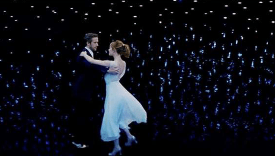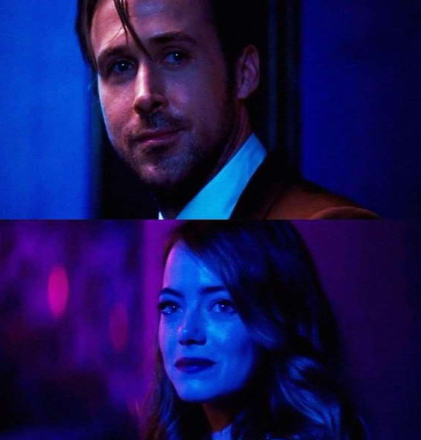 A modo de conclusión, me gustaría destacar la maravillosa escena final y cómo todo lo musical y fotográfico cobra sentido. El tema de Mia y Sebastian empieza la escena llevando al espectador al primer encuentro entre ambos personajes, y es aquí cuando empieza un magnífico recorrido por toda la película en un «pudo ser, pero no fue». Aparecen fracciones de los temas en forma de leitmotivs durante toda la escena, llevándonos desde lo feliz e ideal hasta lo triste y melancólico. La película acaba con el mismo tema sonando mientras ambos se encuentran rodeados de matices azules, rojos y morados, simbolizando quizá ese deseo de estar aún juntos y el final de su relación y comienzo de algo nuevo.