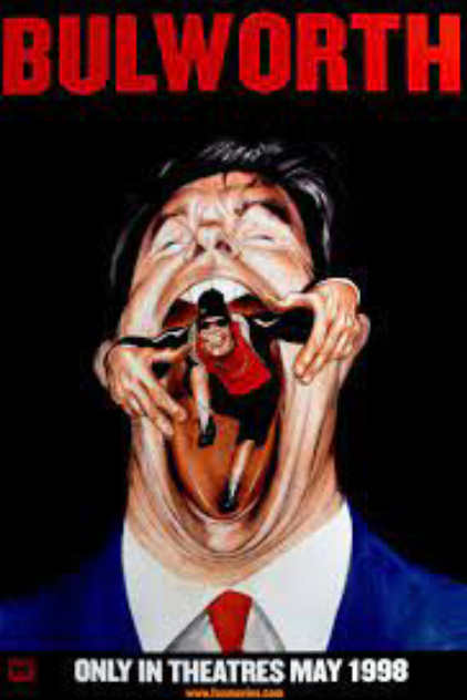 Así en Bulworth (Warren Beatty, 1998, 108 min.) un candidato desencantado y sin posibilidades de victoria, interpretado por Warren Beatty, aquí también director, decide ser brutalmente honesto con los electores y decir las verdades del barquero a ritmo de rap. Romper con el convencionalismo amenaza al establishment y pondrá en peligro la vida del protagonista. Este es uno de los tópicos sobre la política, que las elecciones son teatro y espectáculo que ocultan la realidad para que todo siga igual. La película es estimable, aunque desigual. De nuevo hay un destacado reparto del que hacen parte, por ejemplo, Halle Berry y Sean Astin.