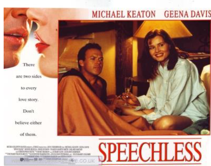 En Sin Palabras (Speechless, Ron Underwood, 1994, 99 min.) Michael Keaton y Geena Davis se conocen por accidente, se caen bien y, a través de sucesivos encuentros y malentendidos, se van enamorando. Pero, claro, no podía ser tan fácil, porque resulta que los protagonistas son Romeo y Julieta de las campañas electorales, pues ambos son escritores de discursos para políticos rivales. ¿Es el amor, que surge en este entorno y entre rivales, sincero o una enrevesada estratagema para sonsacar secretos de la campaña rival? Película de tono amable, como suele ser propio de la comedias románticas. Fluida y disfrutable, aunque falte un poco de química entre Davis y Keaton. Eso sí, aquí ya podemos constatar que, las películas sobre elecciones suelen tener repartos amplios y llenos de secundarios de secundarios reconocibles, que por allí desfilan Christopher Reeve, Bonnie Bedelia y otros muchos.