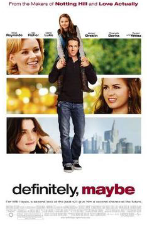 A esta estirpe pertenece Definitivamente, quizás (Definitely, maybe, Adam Brooks, 2008, 112 min.). Un padre soltero, Ryan Reynolds, antes de ser Deadpool, le cuenta a su hija, Abigail Breslin, la pequeña Miss Sunshine, la historia de las mujeres que se han cruzado en su vida (interpretadas por, nada más y nada menos, Rachel Weisz, Isla Fisher y Elizabeth Banks) para revelarle al final, cuál de ellas es su madre. Sí, es cierto, suena un poco a la serie How I met your mother, estrenada en 2005, qué se le va a hacer.
