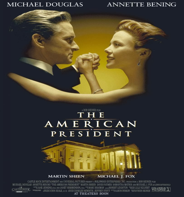 La mejor comedia romántica en el ámbito de la política es El presidente y Miss Wade (The American President, Rob Reiner, 1995, 114 min.) que es la que más usa lo político en su trama para construir la tensión romántica. Rob Reiner dirigió una película escrita por Aaron Sorkin y en la que Martin Sheen, Michael J. Fox y Richard Dreyfuss son ilustres secundarios alrededor del dúo protagonista, Michael Douglas y Annette Bening.