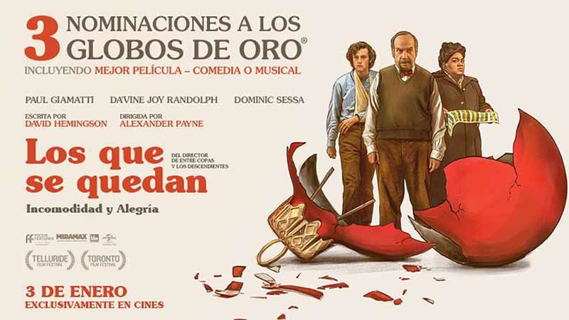 El director y guionista Alexander Payne ya destacó desde los comienzos de su carrera con sus historias como “Election” (1999) o “A propósito de Schmidt” (2002). Ahora, seis años después de la arriesgada “Una vida a lo grande” (2017), película que no llegó a calar en su momento ni al público ni a la crítica, regresa al cine que mejor se le da hacer, y lo hace junto con el actor Paul Giamatti, con quien ya trabajó en “Entre copas” (2004), uno de sus trabajos mejor valorados junto con “Los descendientes” (2011) y “Nebraska” (2013). “Los que se quedan” su octavo largometraje, es una tragicomedia, una especie de road movie navideña que está triunfando entre la crítica y el público y que de momento ya cuenta con unas cuantas nominaciones (en el Festival de Toronto, en los BAFTA y los Globos de Oro), entre los que destaca los dos premios que consiguió en los Globos a la mejor interpretación, tanto masculina como femenina en el apartado de comedia.