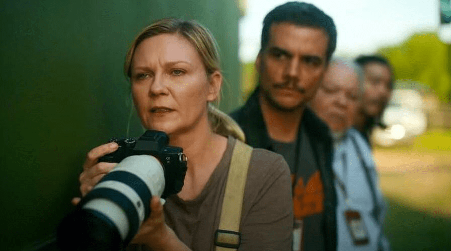 Estamos seguramente ante uno de los filmes más redondo de la filmografía de Garland, en la que sigue apostando por situaciones confusas y perturbadoras (ahora lejos de las metáforas, el minimalismo y la poesía de sus anteriores trabajos), y nos demuestra el gran talento que tiene para filmar secuencias de acción de lo más incómodas y su habilidad para meter al espectador en medio de un conflicto. ‘Civil War’ nos cuenta en forma de road movie, el angustioso y tenso viaje en el que se embarcan nuestro grupo de periodistas: los expertos Lee (Kirsten Dunst) y Joel (Wagner Moura), junto al veterano Sammy (Stephen Henderson), a los que se une la joven novata Jessie (Cailee Spaeny). En su viaje a la Casa Blanca se irán encontrando con diferentes situaciones que van, desde el puro cine bélico, pasando por el drama y el terror en las que ponen al espectador en constante tensión. Con sus más y sus menos, el film presenta un plantel interesante de personajes, bastante creíbles en general, del que habría que destacar al interpretado por Jessie Pleemon (ojito con su secuencia) que da vida a un militar en plan ejecutor sin escrúpulos, en una de las más extremas de la película. Y una factura técnica increíble con un gran trabajo tanto de sonido como de montaje, que hace gala de su presupuesto.